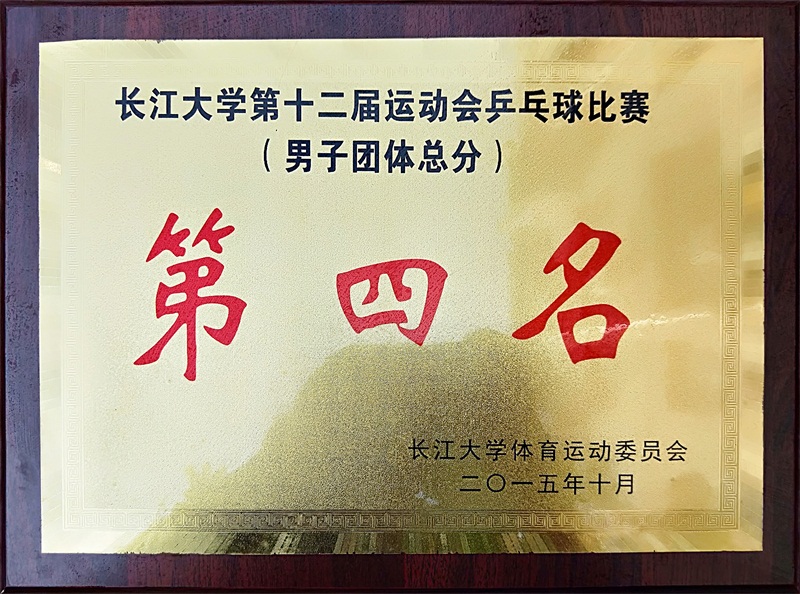 2015年第十二届运动会乒乓球赛团体总分第四名