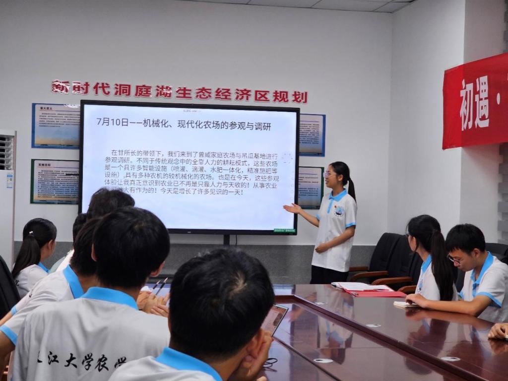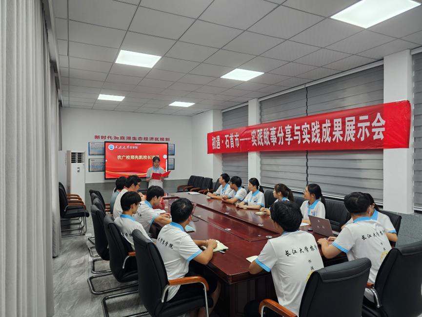 (通讯员 刘钬桥 王静茹 梁传蔚)7月13日下午14时30分,伟德bv1946官网暑期“三下乡”社会实践队于石首市乡村振兴研究院组织开展“初遇·石首市——实践故事分享与实践成果展示会”,到场嘉宾有石首市农业技术培训公司董事长郑先凯、副董事长甘立新以及伟德bv1946官网团委书记付雪娇,伟德bv1946官网暑期“三下乡”社会实践队全体队员参会。