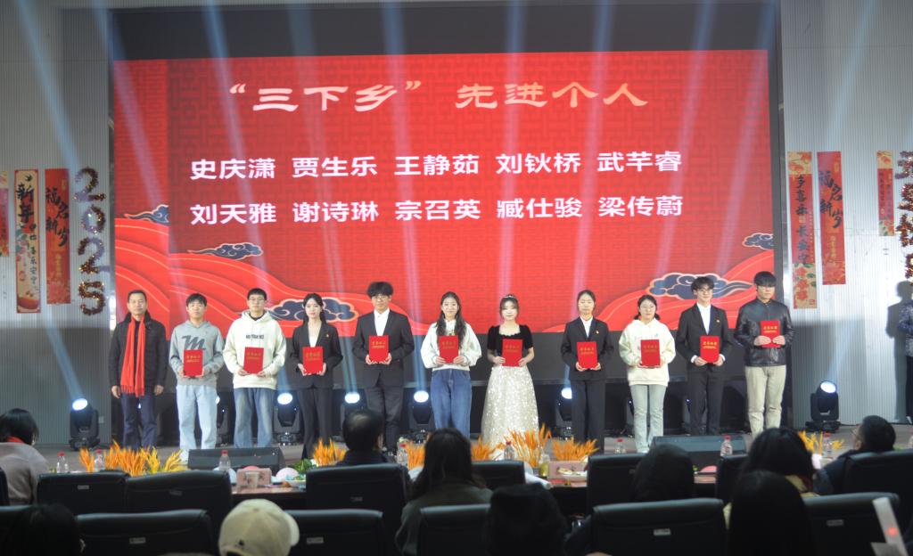 本次晚会以“灵蛇圆梦·耕读兴农”为主题,分为“携手共进·编织农梦”“凝心聚力·同耘农愿”“笃行志远·共续农情”三个篇章,每个篇章分别设“优秀员工先进个人”、“三早进先进个人”、“学科竞赛和三下乡先进个人”等颁奖,晚会中还穿插着三轮抽奖环节。师生共同登台,用歌舞、小品、诗朗诵、乐队表演等多种类型的11个节目,为现场观众带来了一场精彩的视听盛宴,彰显出农学人昂扬奋进的精神面貌。