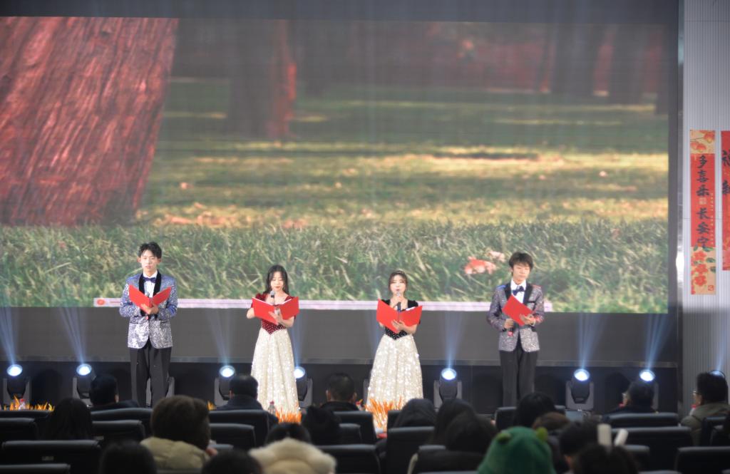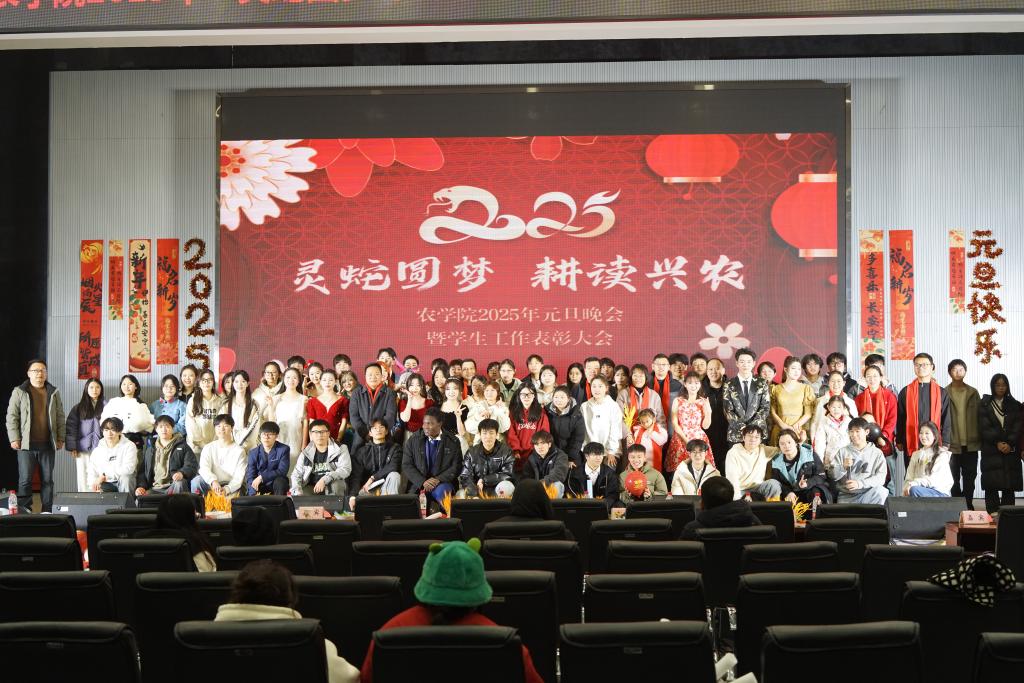 (通讯员:吴静宜 付雪娇 严树彬 向建华 涂星雨)祥龙回首辞旧岁,金蛇起舞迎新年。12月31日晚,2025年“灵蛇圆梦·耕读兴农”元旦晚会暨员工工作表彰大会在农科大楼1058隆重举行。参加本场晚会的嘉宾有党委员工工作部部长张科、校团委书记毛德波、党委研究生工作部副部长黄龙、党委员工工作部副部长李秋果、校团委副书记信晓阳、平台与实验室管理处副处长谭亮魁、党委宣传部科长李胜杰及兄弟公司的师生,公司党委书记周锦华、党委副书记尹小华及学工队伍、任课老师参加晚会。