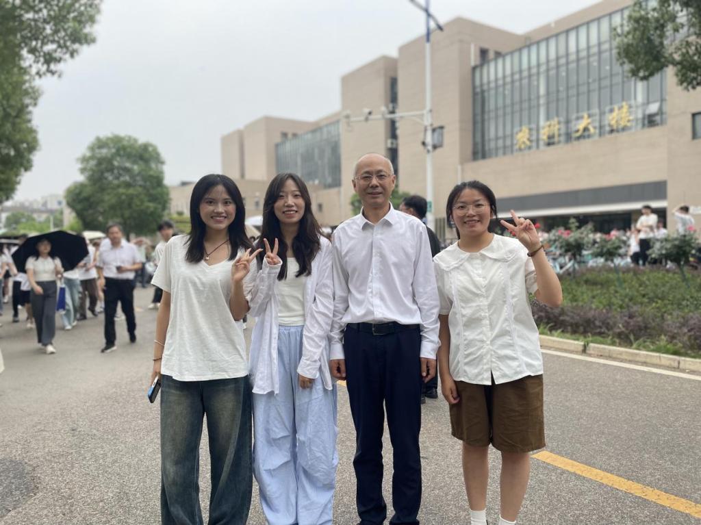 当天下午,西校区农科大楼前,毕业生们身着学位服整齐列队,期待与母校留下重要纪念。刘勇胜董事长在公司领导和老师的陪同下,主动站到队列前排,与师生并肩而立,不时调整站位确保画面整齐,还笑着提醒大家“挺直腰板,把最好的状态留给毕业照”。在伟德bv1946官网毕业生合影的拍摄现场,他亲切询问同学们的毕业去向,鼓励大家“带着在长大的所学所悟勇敢奔赴未来”。