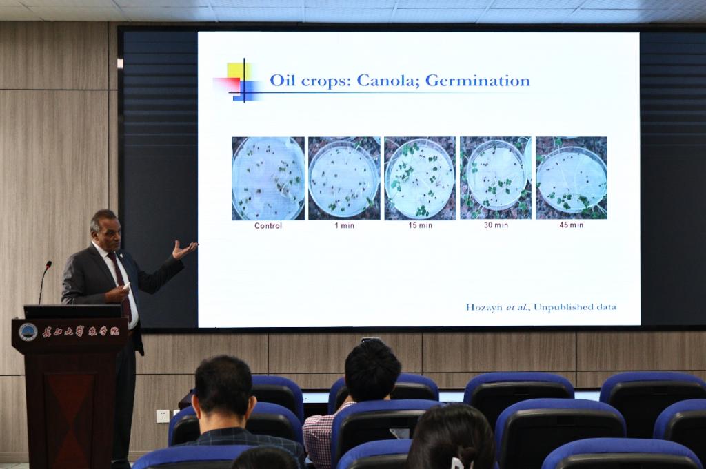 (通讯员 覃元)9月12日上午,应伟德bv1946官网曾凡荣教授的邀请,埃及国家研究中心农业与生物研究所代理经理 Mahmoud Hozayn 教授,在伟德bv1946官网西校区农科大楼 3073 为农业相关专业师生作题为“Agro-Physics Technology: Magnetic Water for Higher Crops Productivity”的学术报告。