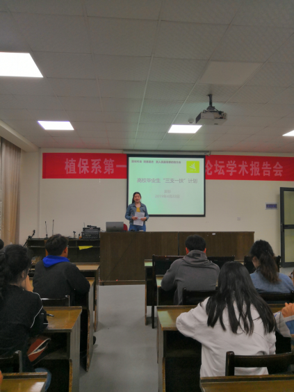 在会上,辅导员吴钐主要从什么是“三支一扶”、聘用流程、招聘计划、招聘对象及条件、报考流程以及优惠政策六个方面为大家如是讲解了“三支一扶”。辅导员吴钐强调,我们老员工现在要抓住这次机会,到农村去,到基层去,到人民最需要的地方去。随后,郭凯讲述了他在“三支一扶”中的感受,他说,参加此次活动不仅有优厚的待遇,还会在自己的履历上添加一份风采。
