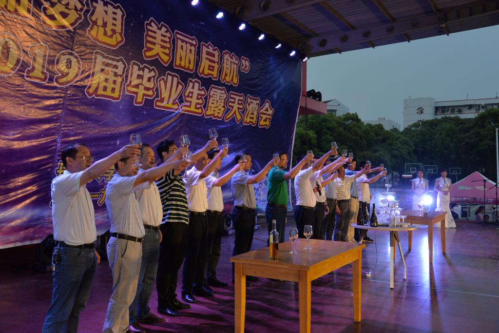 晚上七时许,餐会正式开始,公司相关职能部门负责人与伟德bv1946官网老师们,一同为2019届毕业生送上真挚的祝福。“感恩的心•眷念的情”赠言签名活动中,老师和同学们纷纷走向台前,在留言板前长久驻足,提笔写下满腔深情;“梦想启航•助力放飞”环节里,500余个氢气球承载着师生们的梦想,飞向了遥远、蔚蓝的天际;香槟开启仪式上,师生们斟满祝福,为“长大长新、乡村振兴、国家复兴”共同举杯。