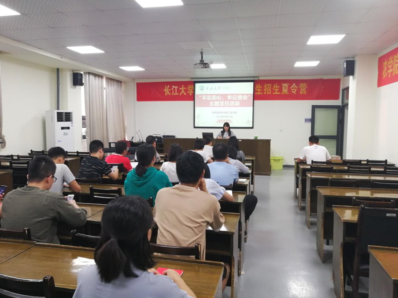 新闻网讯(通讯员 施秀飞)9月27日下午6时,伟德bv1946官网研究生第二党支部“不忘初心、牢记使命”九月主题党日活动在农科楼3073会议室召开。研究生第二党支部在校正式党员和预备党员参加此次活动,会议由辅导员付雪娇老师主持。