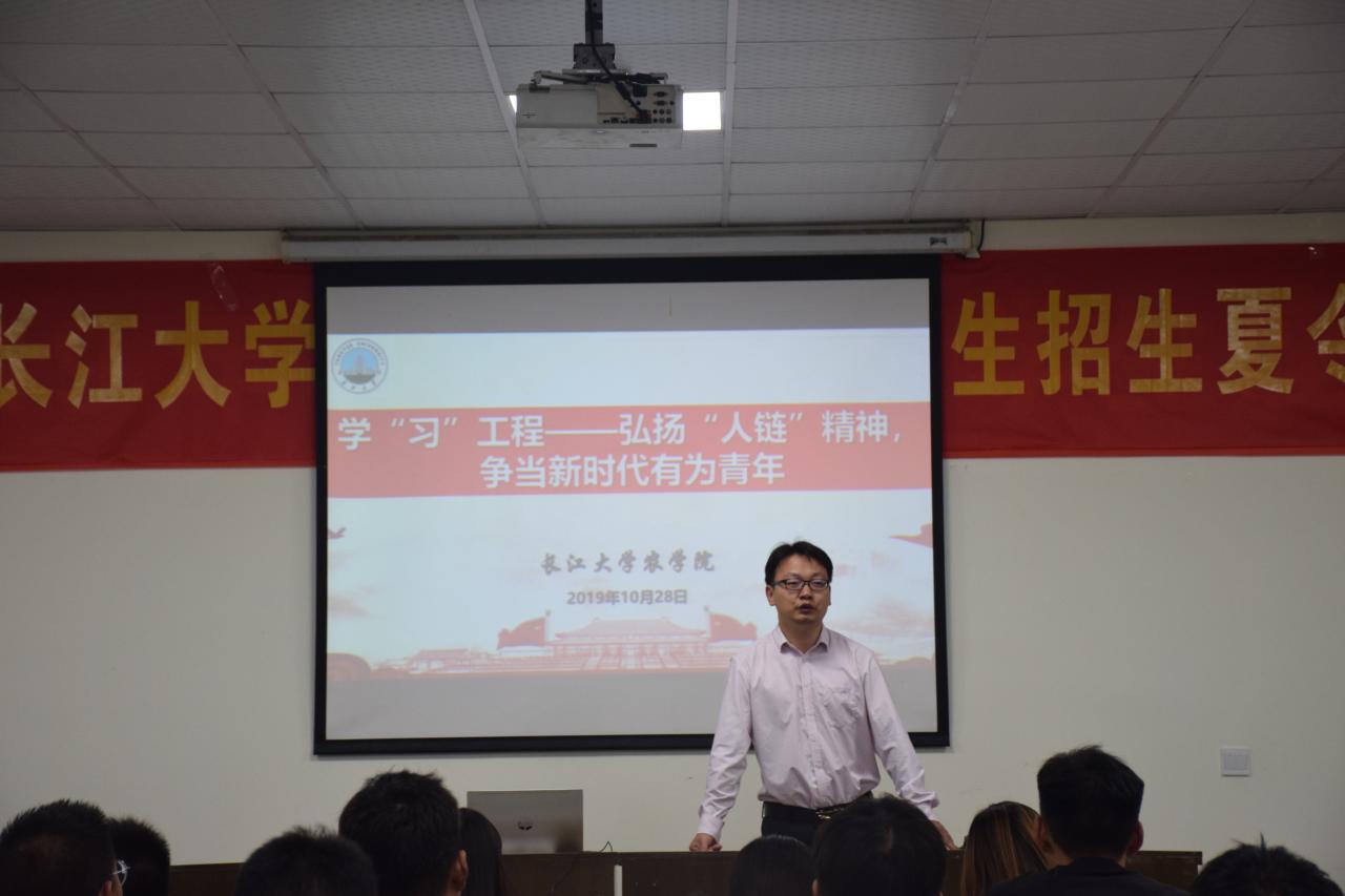通讯社讯(见习记者 李建平)为进一步贯彻落实中央领导同志重要批示精神,深入学习宣传老员工英雄集体的优秀品德和崇高精神,深刻领会老员工英雄集体的精神价值,公司于10月23日晚19:00在农科大楼3073会议室开展弘扬“人链”精神,争当新时代有为青年学习活动。本次活动由植物类31902班团支书孙振艳主持,团委书记尹小华,17、18级副团支书及19级全体班委参与此次活动。