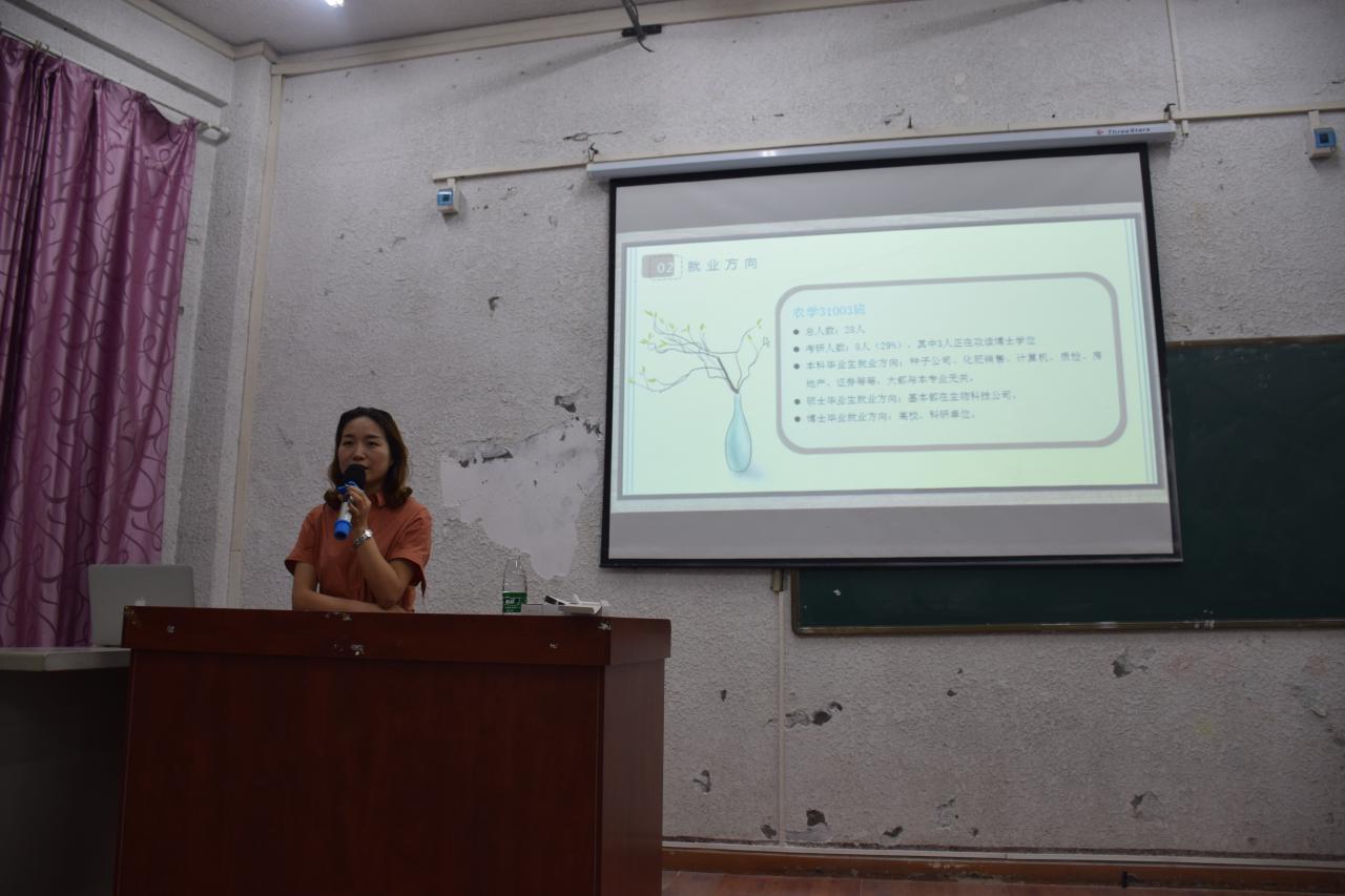 随后,刘莎以“农学前景”为关键词,开始了她的演讲。“近几年,国家大力倡导和支持新农村建设,相继出台了多部惠及‘三农’的方针和政策,全国多所高校也纷纷增设了伟德bv1946官网……这些现象足以印证农学的前景是非常可期的。”刘莎鼓励同学们选择、接受、相信并热爱自己的专业,培养个人对学农的信心。