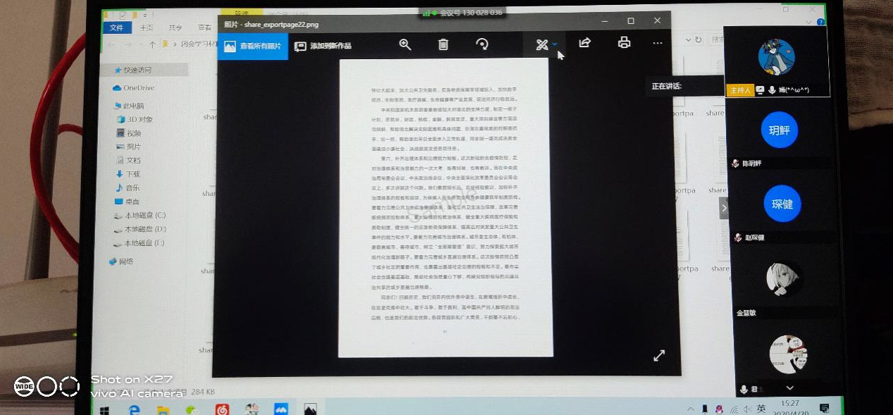 植物类31901团支部积极参与此次团会活动,利用网络与团组织连线,同学们通过直接阅读习近平总书记的讲话原文来学习,了解到了讲话的深邃内涵,一致表示会严格按照讲话内容来约束自己,助力“抗疫”。