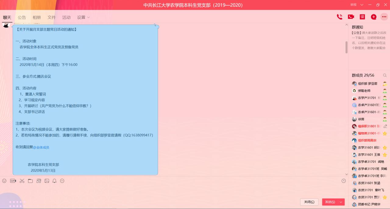 通讯社讯(员工记者 张毅)为引导广大党员用马克思主义立场、观点、方法认识和对待宗教,坚定共产主义信仰和中国特色社会主义信念,公司本科生党支部于5月14日16:00通过QQ群视频通话的方式开展了线上支部主题党日活动。此次活动由伟德bv1946官网本科生党支部宣传委员杨欧主持,全体本科生正式党员以及预备党员参与此次活动。