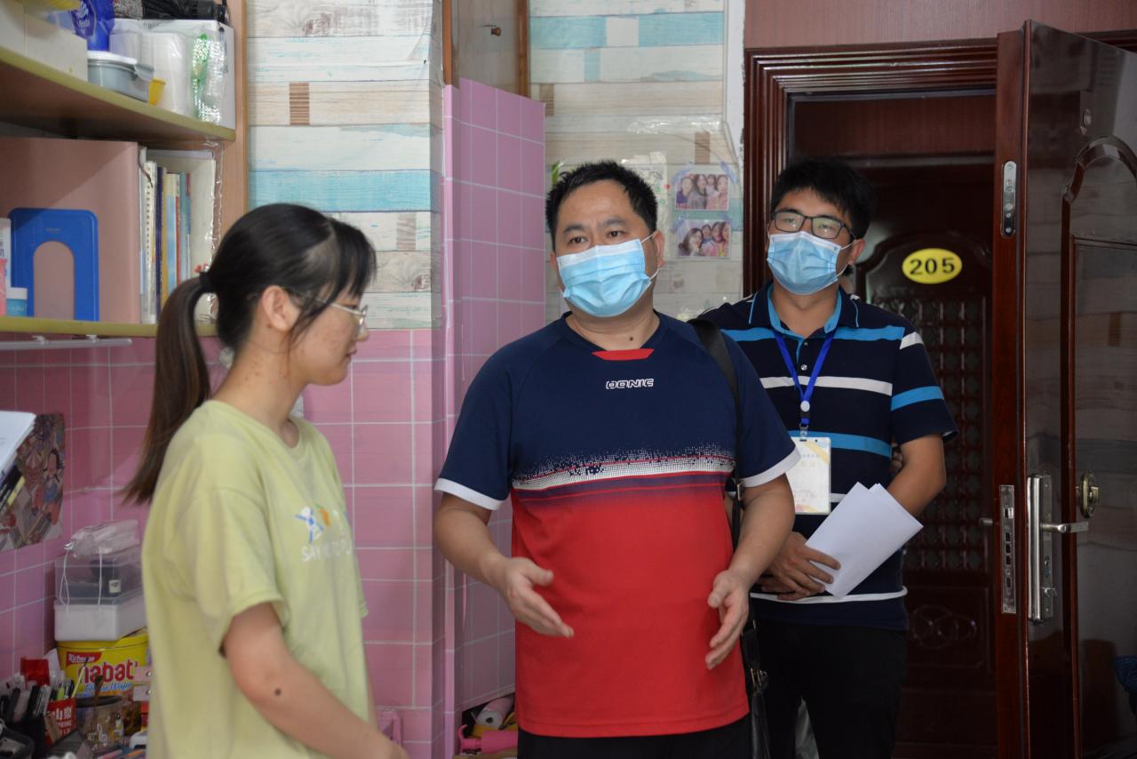 通讯社讯(员工记者 覃杨)为进一步强化疫情防控期间返校员工的健康安全防范意识,营造良好的寝室卫生环境,了解返校后员工的生活学习状况,9月3日下午2点,伟德bv1946官网副经理方正武、党委副书记谭亮魁、学工办主任刘庆、分团委书记侯聪、辅导员付雪娇及辅导员林香亮带队走访了本科生寝室。