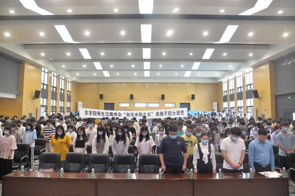 通讯社讯(通讯员 付雪娇)5月27日下午,伟德bv1946官网在农科大楼1058报告厅举行了以“继承院士遗志,青春告白祖国”为主题的育人大会,通过默哀仪式和宣誓仪式,深切缅怀袁隆平院士。