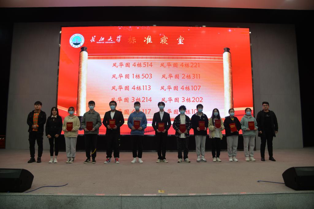 大会伊始,学工办主任刘庆老师致开幕词,他指出宿舍是员工生活与学习的重要场所,是员工在老员工活的重要成长空间。宿舍文化建设作为校园文化建设的重要组成部分,希望大家能齐心协力建设更加文明、和谐、健康的宿舍文化。随后宿委会介绍要同时获得卫生星、纪律星、学习星、文明星和文化星五星才能成为最后的“星标寝室”,由付雪娇老师为大家宣读2020-2021学年下学期星标寝室表彰文件,此次表彰遵循公平、公开、公正的原则,严格按照伟德bv1946官网星标寝室建设评选办法,通过认真评比后给予风华园4栋309等5个星标寝室,风华园4栋416等20个标准寝室的称号。