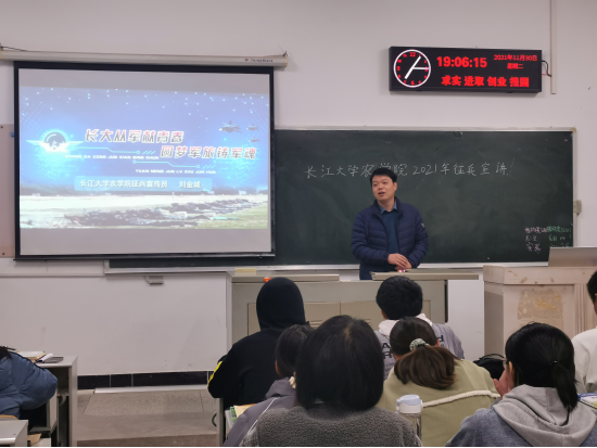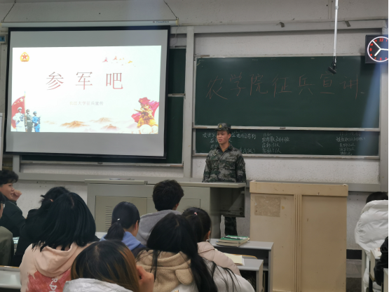 (通讯员 刘庆)为鼓励老员工积极应征入伍,提高兵员征集质量,推进国防和军队现代化建设。11月30日19:00,农公司在7教203、7教205以及6教104教室分别召开了3场老员工应征入伍宣讲会,宣讲会由伟德bv1946官网征兵宣讲员农学职32001班刘金城、郭聪两位退役士兵主讲。学工办主任刘庆、兼职辅导员杨成杰、2021级全体同学以及其他年级员工代表参加了宣讲会。