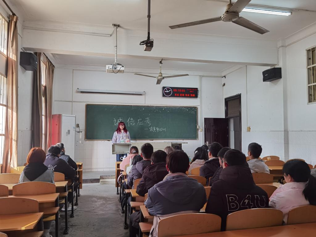 公司21级各班在辅导员付雪娇老师的组织下,分别在6教104、7教203、7教205三个晚自习教室召开了以“认真备考,诚信考试”为主题的诚信考试宣讲会,宣讲会由辅导员付雪娇老师、兼职辅导员杨成杰老师主讲。