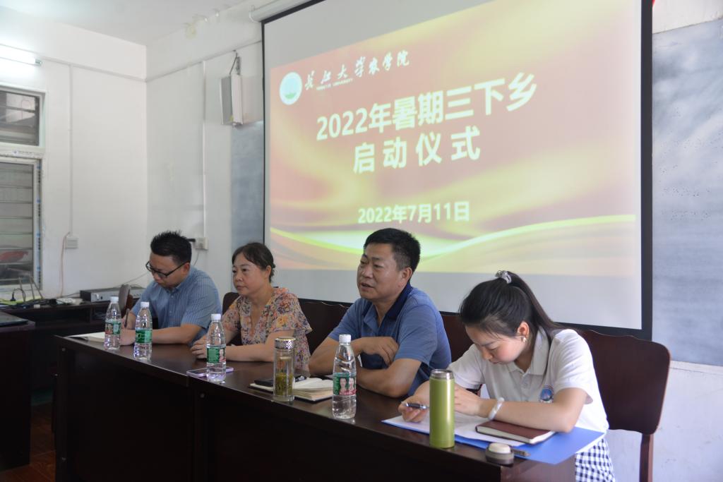 (通讯员 夏应翔)为深入学习贯彻习近平新时代中国特色社会主义思想,坚持“受教育、长才干、作贡献”的宗旨,帮助青年员工不断提升社会化能力,7月11日上午,伟德bv1946官网暑期社会实践服务队在党委副书记尹小华、分团委书记侯聪的带领下,在兴山县水月寺镇郑家埫村举行伟德bv1946官网暑期三下乡暨青年红色筑梦之旅启动仪式。扶贫工作队队长王雨、郑家埫村村委会书记黄教会参加了仪式。