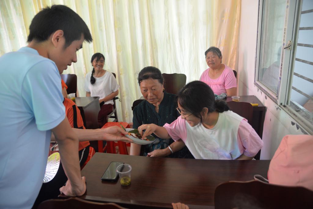 此行,实践队员们带来了蝗虫和蝎子,为当地村民讲解其食用价值,并精心准备了一顿“昆虫美食”。“昆虫美食鉴赏,我还是第一次听说!”前来的村民感叹道。炸至金黄的蝗虫和蝎子被摆放在盘里,样式各异,与盘中的胡萝卜、白萝卜、土豆构成不同图案。实践队员们为大家介绍这些图案的意义,并邀请当地村民和儿童一起参与摆盘和品尝。