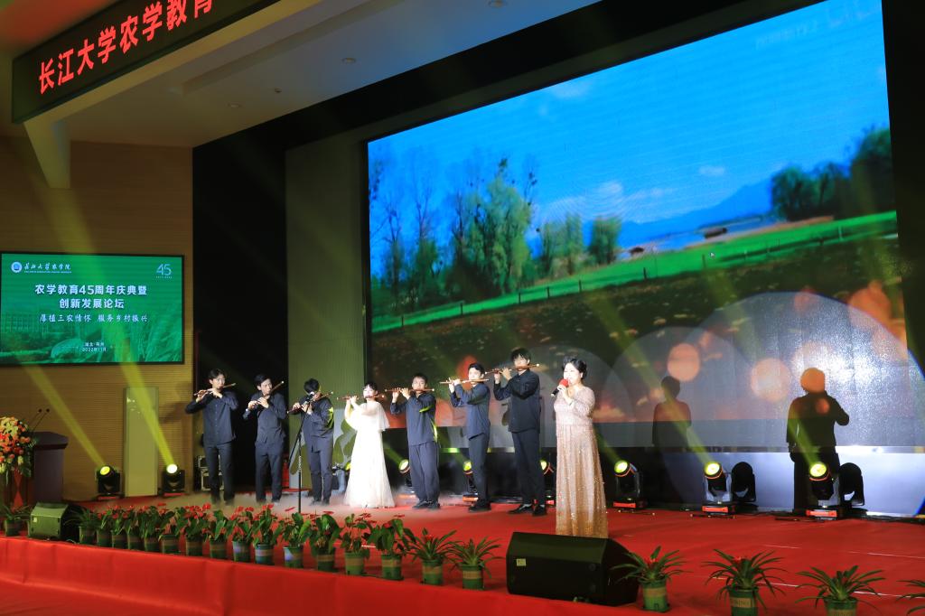 活动中还穿插了节目表演。“45年前,我们在沙洋,七里湖边,书声朗朗……”,诗歌朗诵《农学人的光荣和梦想》回顾历史、展望未来,将活动推向高潮。一个个节目,表达了师生对农学教育和农业科技的热爱与深情,展现了农学师生献身农业发展的无私精神。庆典在民乐合奏《扬鞭催马运粮忙》和《在希望的田野上》中落幕。