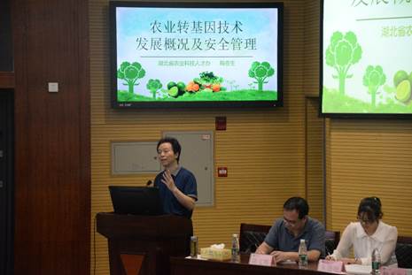 9月20日,湖北省农业科技人才办公室组织的2023年“转基因科普进校园”活动走进伟德bv1946官网,科普活动在伟德bv1946官网西校区农科大楼1056报告厅举行。