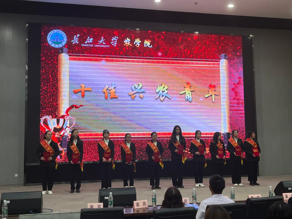 长大学农,大有作为。公司党委书记姜清奎宣读了第十三届“十佳兴农青年”的表彰决定,鼓励同学们坚持以学为主,全面发展,努力成为创新型、创业型农业高级人才。副教授尹军良为这十佳兴农青年颁奖并合影留念。