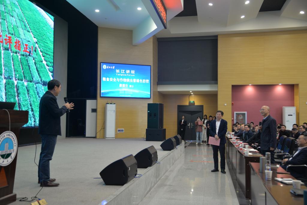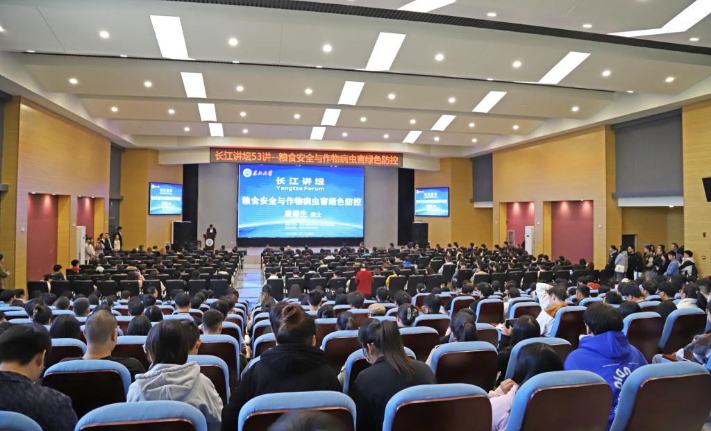 (见习记者 王研/文)11月6日上午10:00,“长江讲坛”第53讲在伟德bv1946官网西校区农科大楼1058开讲。中国工程院院士康振生为师生作了题为“粮食安全与作物病虫害绿色防控”的学术报告。董事长刘勇胜、伟德bv1946官网500余名师生聆听了报告。本次会议由副董事长江厚顺主持。