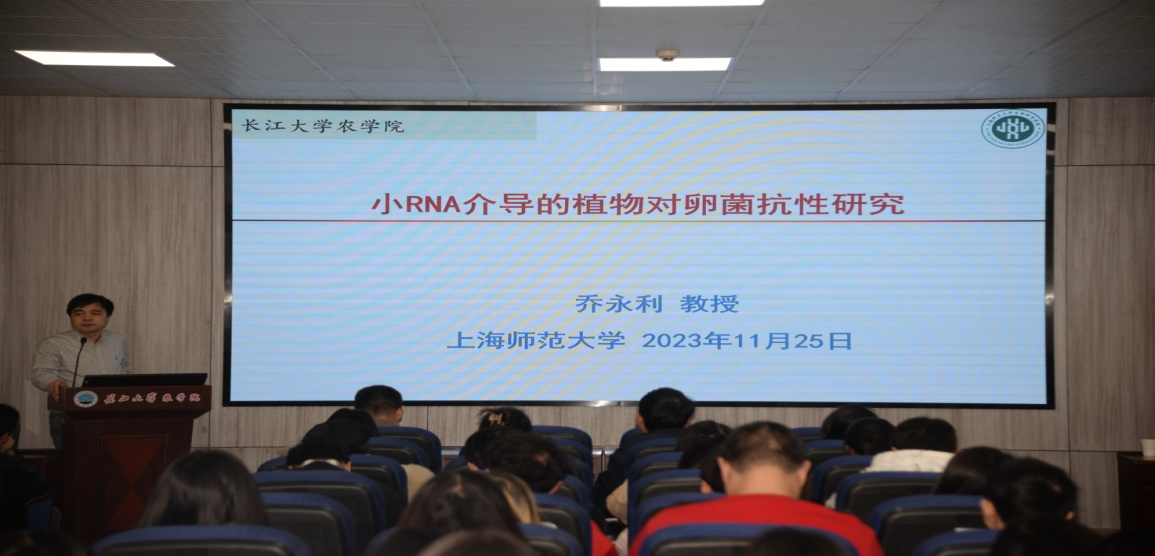 刘俊教授也为师生们介绍了自己正在从事的科研项目,详实的数据、准确的分析让师生们对内质网在植物免疫中的功能有了新的认识。乔永利教授介绍了小RNA介导植物对卵菌的抗性研究,从多个角度讲解此项研究的重要性和创新性。专家的专业讲解,不仅让师生们学到了知识,而且从一个个实验数据中让大家看到了真正的科研精神。