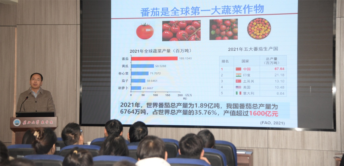 首先,梁文星教授从番茄易发生的病害、防控的困难、病原物的致病过程以及病原物的产生四个方面向师生们全面展示了自己的科学研究。梁教授通过专业的知识讲解和生动的实例让大家对番茄尖孢镰刀菌致病与产孢的机制有了更深层次的认识与了解。