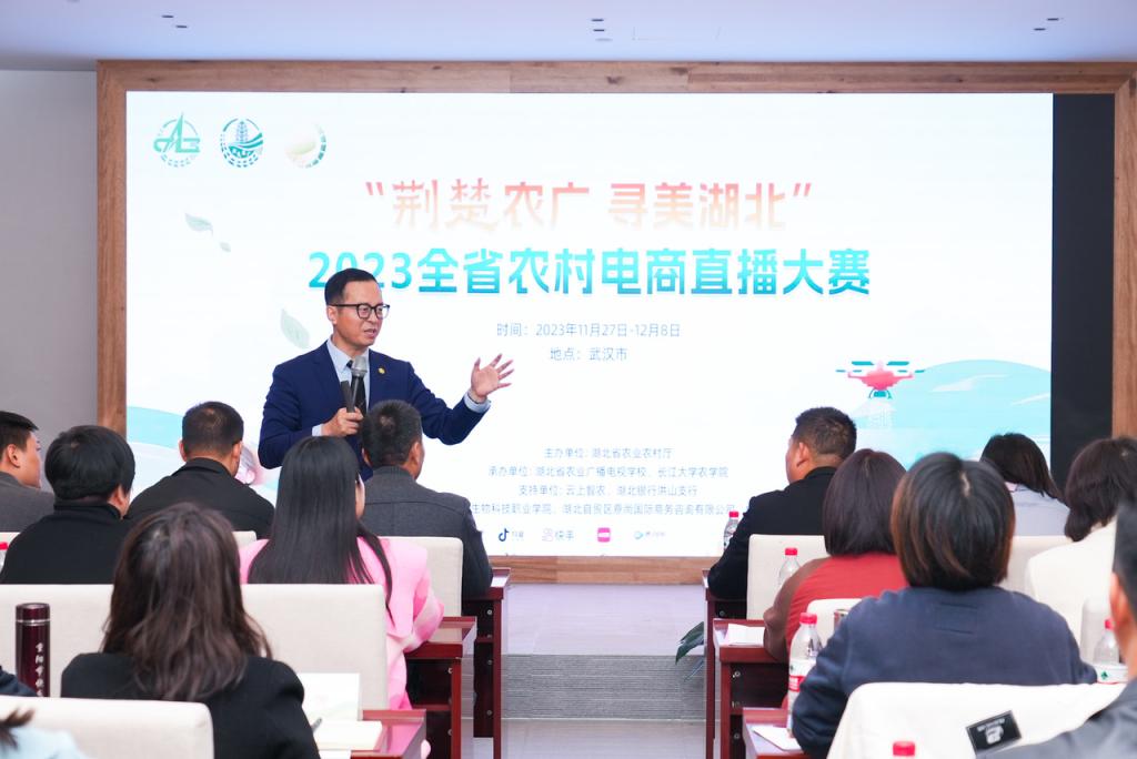 由湖北省农业农村厅主办,湖北省农业广播电视公司与伟德bv1946官网承办的“荆楚农广 寻美湖北——2023 全省农村电商直播大赛”于2023年11月27日在武汉正式启动。本次大赛旨在通过“培训+比赛”的形式,激励更多年轻人立足农业创业兴业,展示湖北省乡村振兴的新风貌和农产品的特色优势。大赛已征集到众多优秀的农村电商直播人才参与,通过直播销售农产品,推动农业产业升级和农民增收致富。