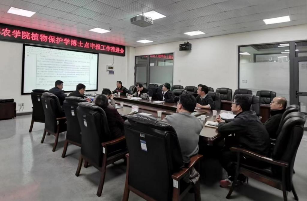 会议围绕教育部植物保护学博士点新增申报条件展开,特邀校内专家管锋处长、唐伦刚处长、王真副处长、经管公司何蒲明教授(副经理),以及公司植物保护学骨干专家王文凯教授、李俊凯教授把脉问诊。结合植物保护学博士点申报工作进展,围绕植物保护学学科优势、特色,办学成果,学术骨干等申博材料展开研讨。