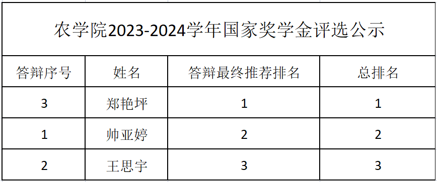 根据公司《关于开展2023-2024学年本科生国家奖学金初评工作的通知》以及《关于开展2023-2023学年本科生国家奖学金追加名额评审工作的通知》和《伟德bv1946官网关于开展2023-2024学年国家奖学金初评的通知》的相关要求,经个人申请、学工办初审、公司审核、员工答辩、公司国家奖学金评审领导小组审定等程序,公司2023-2024学年国家奖学金追加名额的评审工作已结束,公司一致同意按照国家奖学金答辩结果的名次进行递补,现将追加名额的评审结果向全院师生进行公示,公示期为2024年11月6日-2024年11月8日。公示期内,如有异议可向公司员工事务办公室反映。联系人:唐老师,电话:0716-8066566。