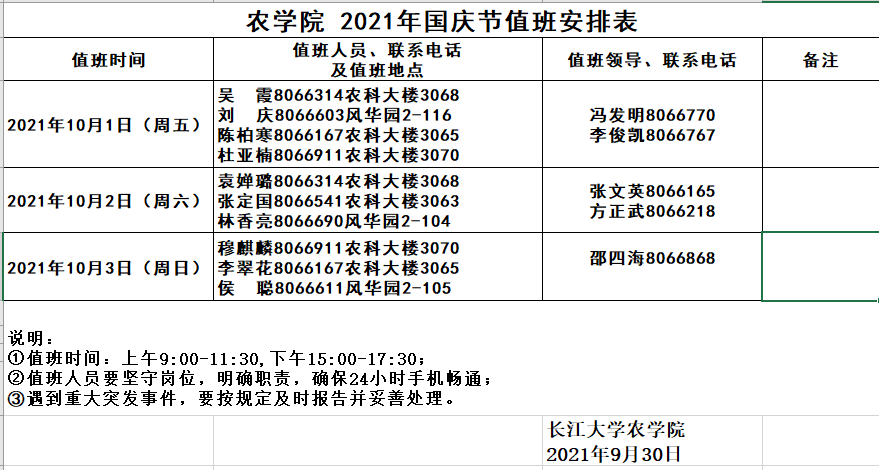 伟德bv1946官网 2021年国庆节值班安排表