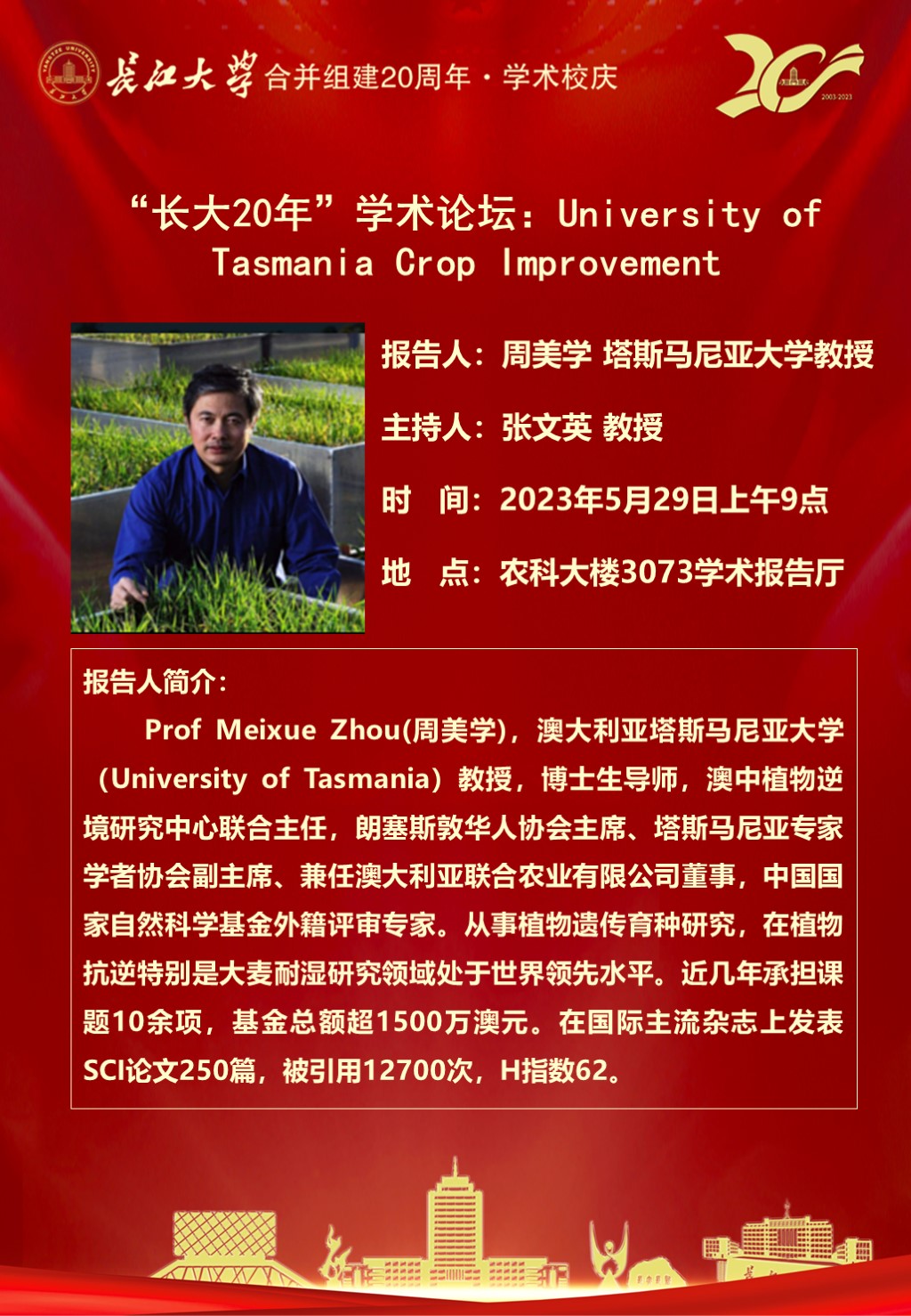 “长大20年”学术论坛暨伟德bv1946官网学术讲坛:University of Tasmania Crop Improvement