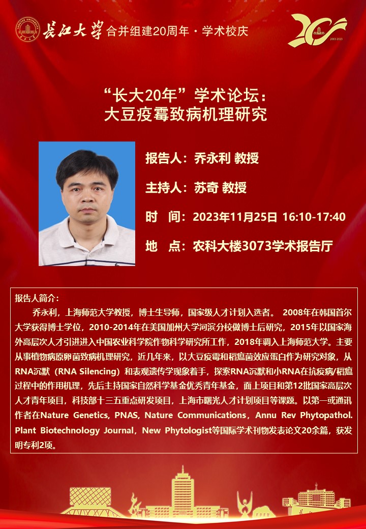 上一篇: “长大20年”学术论坛暨伟德bv1946官网学术讲坛:蛋白乙酰化修饰调控尖孢镰刀菌致病与产孢的机制研究
