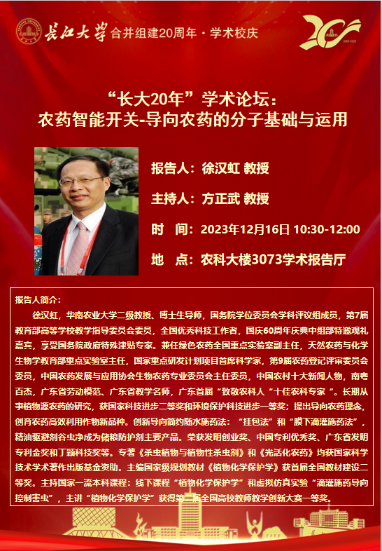 “长大20年”学术论坛暨伟德bv1946官网学术讲坛:农药智能开关—导向农药的分子基础与运用