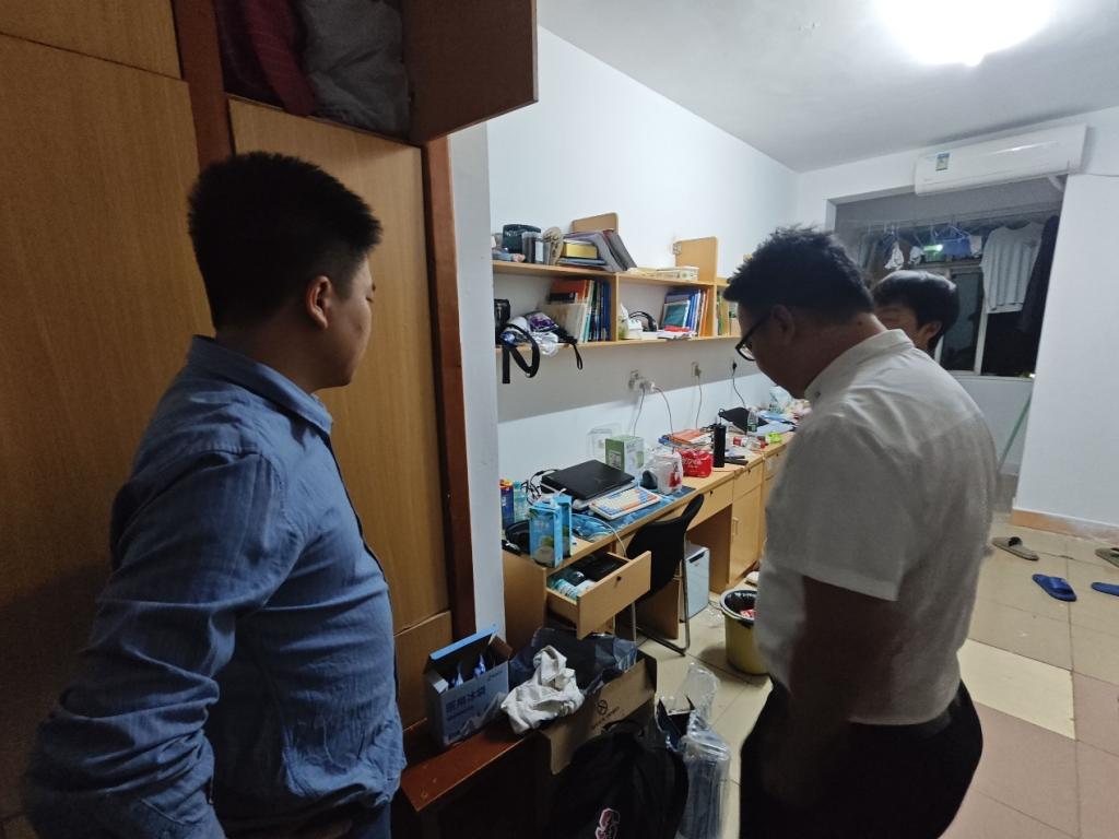 (通讯员 王浩东)为进一步加强员工宿舍管理,规范员工行为,营造一个干净、整洁、和谐的生活学习环境,公司党委副书记尹小华老师、学工办主任黄承石老师、伟德bv1946官网分团委书记付雪娇老师和辅导员唐玉婷于10月8日晚上突击检查员工宿舍,并借此机会与员工进行深入交流,探讨学习、生活、考研等多方面的问题。