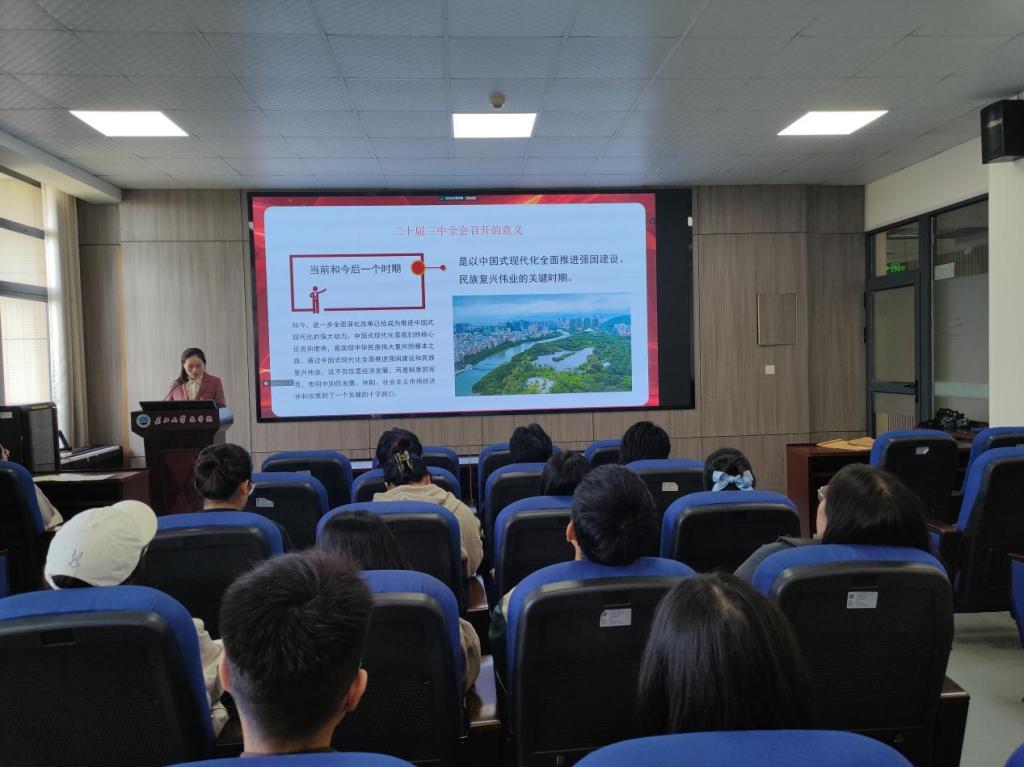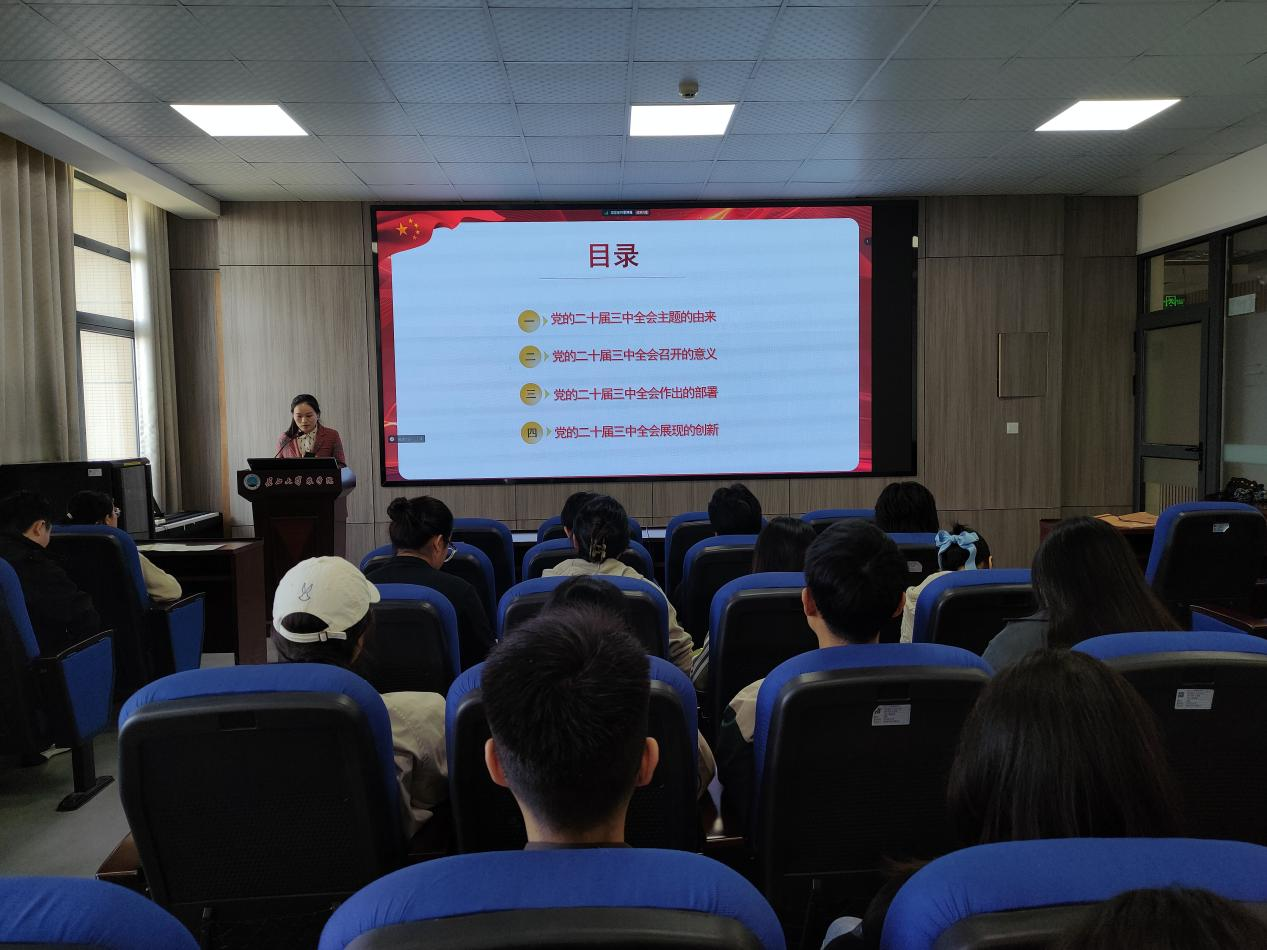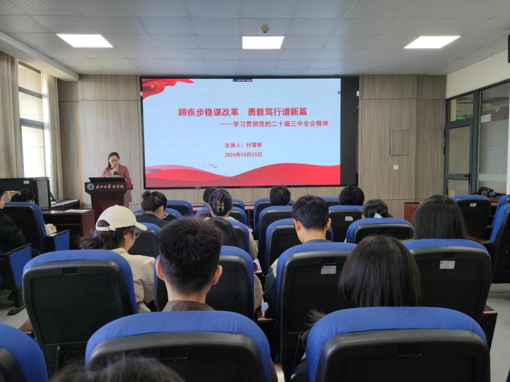 (通讯员 任娇 宋梦圆)为深入学习贯彻党的二十届三中全会精神,引导广大青年深刻领会全会精神,激发他们的责任感与使命感。10月23日,伟德bv1946官网团委书记付雪娇在农科大楼3073会议室以“蹄疾步稳谋改革 勇毅笃行谱新篇”为题为80余名党员、积极分子上了一堂精彩的思政课。