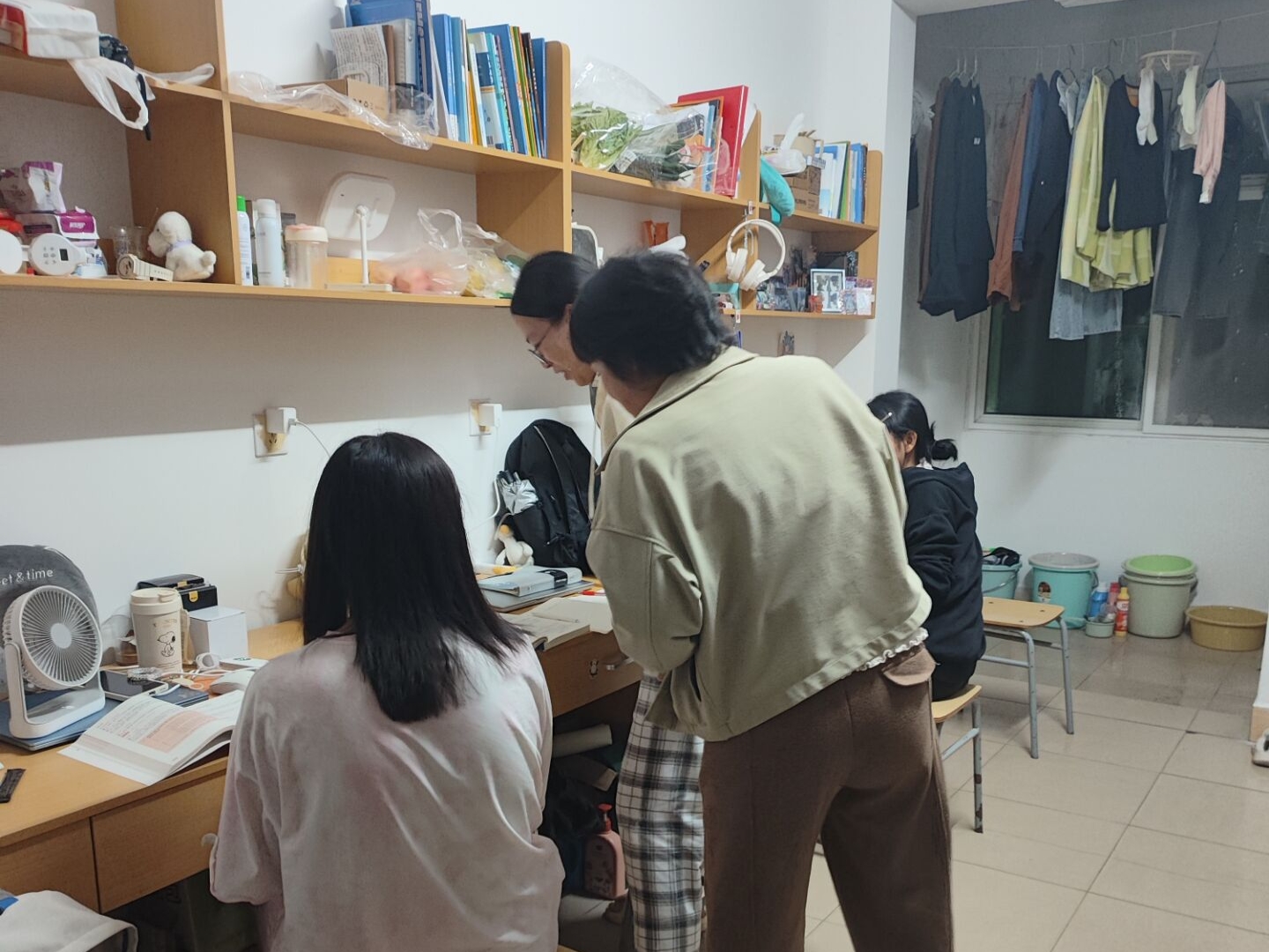 (通讯员 卢李润)为了更全面、更有效地加强对于员工宿舍的管理,进一步规范员工的日常行为,公司党委副书记尹小华老师、学工办主任黄承石老师、兼职辅导员郝梨老师和兼职辅导员孙振艳老师于10月24日晚突击员工寝室检查,旨在确保寝室安全和卫生整洁,并与同学们进行亲切交流,探讨学习、生活、毕业发展等多方面问题。