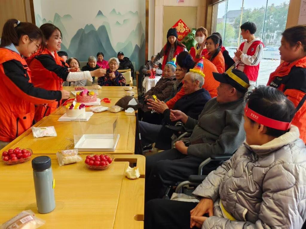 志愿者们表演的第一个节目《桃花朵朵开》拉起了全场爷爷奶奶的热情,《老有老的传奇》朗诵加歌曲串烧让老人们笑容满面,《红梅赞》更让老人们陶醉其中,最后的小游戏,老人们的脸上洋溢着欢快的笑容,活动当天,有五位老人生日,志愿者们和护工们共祝老人们生日快乐。