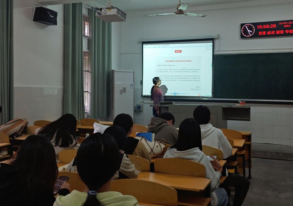 农学卓32201班团支部副书记武芊睿于11月18日带领同学们在七教209开展本月团会活动。团会通过PPT讲解、故事分享和小组讨论等方式,深入学习了习近平总书记关于促进高质量充分就业的重要讲话精神,帮助同学们了解高质量充分就业新定位、新使命,呼吁同学们不断强化就业意识与能力,瞄定新定位,勇担新使命。班级不少同学表示,会以此次活动为契机,更加积极地投身于强国复兴的伟大征程中。