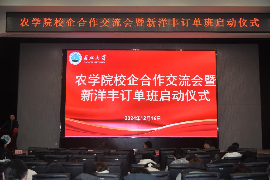(通讯员 王研 徐馨悦/文 赵雨洁 郑怡乐/摄)为了让同学们更清晰地了解就业方向,提高职业技能,同时,加强公司与企业的联系,为同学们搭建直通职场的桥梁。12月16日18:50,伟德bv1946官网与新洋丰农业科技股份有限公司共同举办的订单班启动仪式在农科大楼1058报告厅隆重举行。出席本次活动的嘉宾有:新洋丰人力资源中心主任龚世虎、市场推广部部长汤新泉、市场推广部首席农艺师邓超、人力资源中心培训公司常务副董事长周飞、人力资源中心招聘薪酬部副部长赵晶、人力资源中心培训公司专职讲师孟凡宇及公司党委副书记尹小华、经理助理邓锋林、学工办主任黄承石、辅导员林香亮。本次活动由尹小华书记主持。此次启动仪式标志着双方在人才培养、产学研合作等方面迈出了坚实的一步。