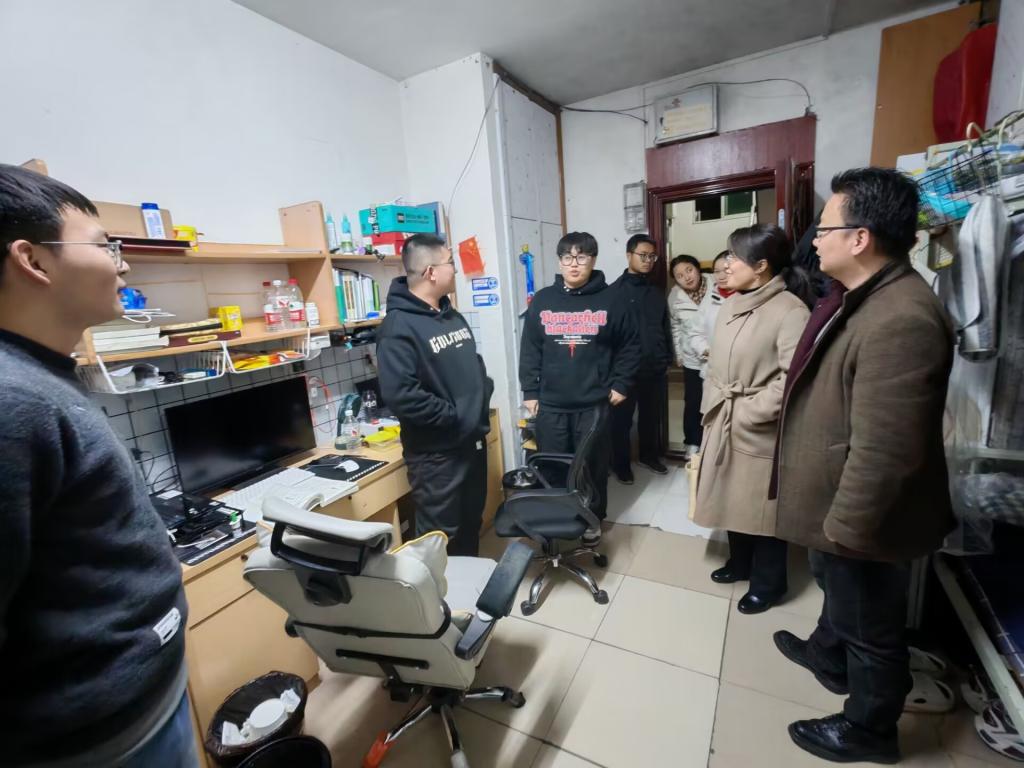 (通讯员 孟瑶)满怀着对员工的殷切关心,公司党委副书记尹小华老师、辅导员付雪娇老师、辅导员唐玉婷老师、兼职辅导员郝梨老师于2024年12月19日晚上九点走访了员工们的寝室,旨在全面了解同学们的学习生活状况,为同学们提供更贴心细致的关怀与引导,打造更加安全,舒适,有序的居住空间。