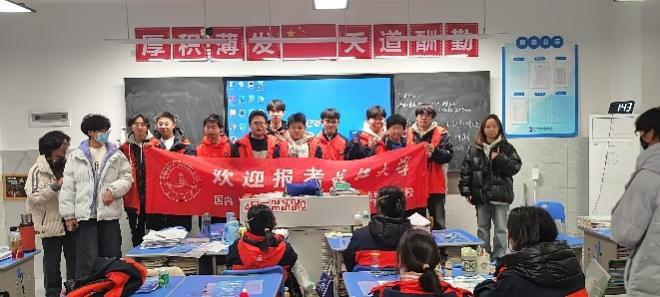 寒假期间张可欣和她的小伙伴们以伟德bv1946官网学子身份回到高中母校宣传,她们拜访了曾经的高中老师,老师们也关心的询问了其在大学的生活和学习状态,寒暄过后便和老师一起去布置场地和走了一下流程。随着学弟学妹们的入场我们的活动也正式开始,张可欣首先介绍了伟德bv1946官网的基本校情和科研成果,还详细的讲解了伟德bv1946官网历年来对于技能高考批次招收人数的变化,然后还与学弟学妹们进行了一些互动,向他们解答了关于伟德bv1946官网的一些疑问和分享了一些学习经验,最后还建立了一个群聊,方便为学弟学妹们随时解疑答惑。