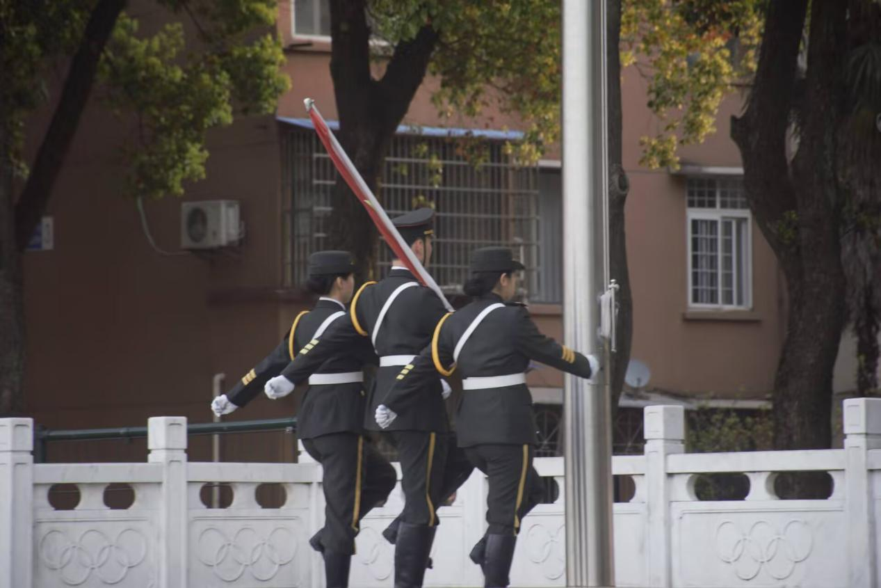 升旗仪式第一项:升国旗,唱国歌。全体师生面向国旗共同唱响国歌护卫队的同学们英姿飒爽,展现着青春的朝气。