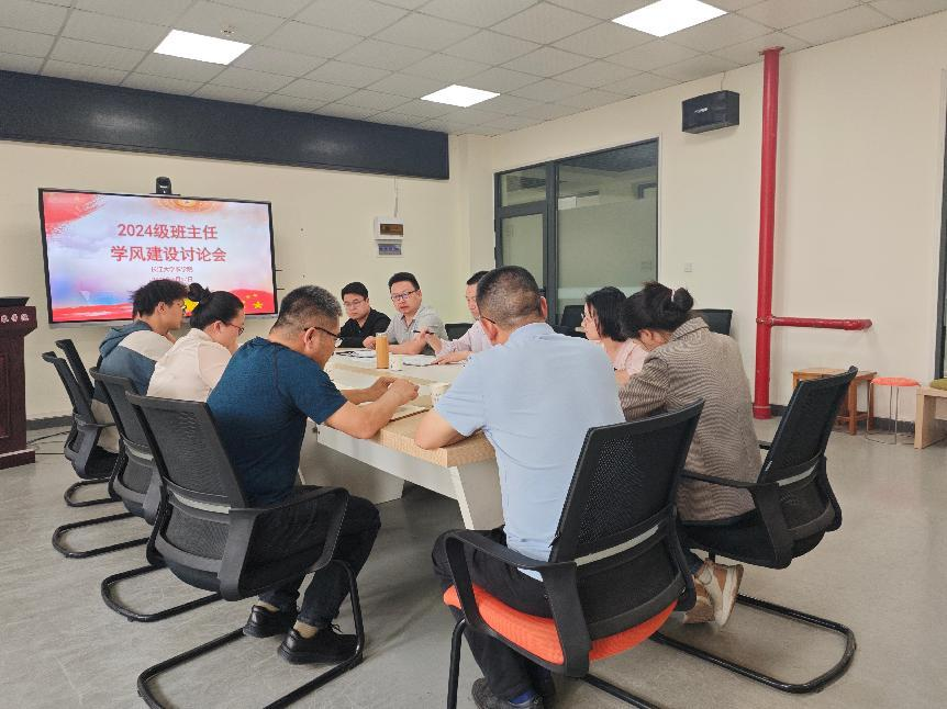 (通讯员 郝梨)为端正大一员工学习态度,加强公司学风建设,4月17日14:30,公司在农科大楼3071会议室召开了2024级班主任学风建设讨论会。公司党委书记周锦华、副书记尹小华、年级辅导员付雪娇、2024年级各班班主任参加了会议。