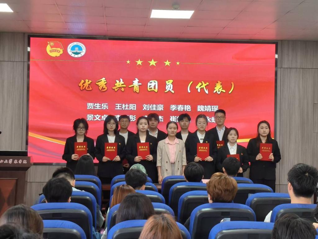 在五四评优表彰环节,主持人宣读了2025年伟德bv1946官网团员在评优表彰中的获奖情况,并邀请付雪娇老师为“优秀共青团员”、“优秀共青团干部”和“活力团支部”代表颁奖。
