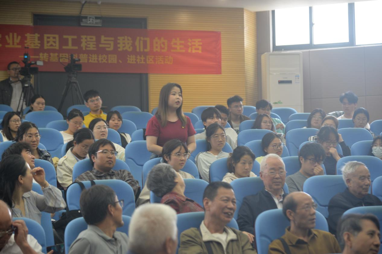 面对同学们关心的转基因安全性问题,马东方说明我国严格的安全管理体系、商业化审批流程及标识制度。此外,他还针对“经过审批的转基因食品是安全的”“巴西、阿根廷等国通过种植转基因作物振兴了经济”等问题做出解答,纠正以往“转基因食品是不安全的”的认知误区。讲座过程中,同学们积极提问,与马东方展开热烈互动,现场学习氛围浓厚。