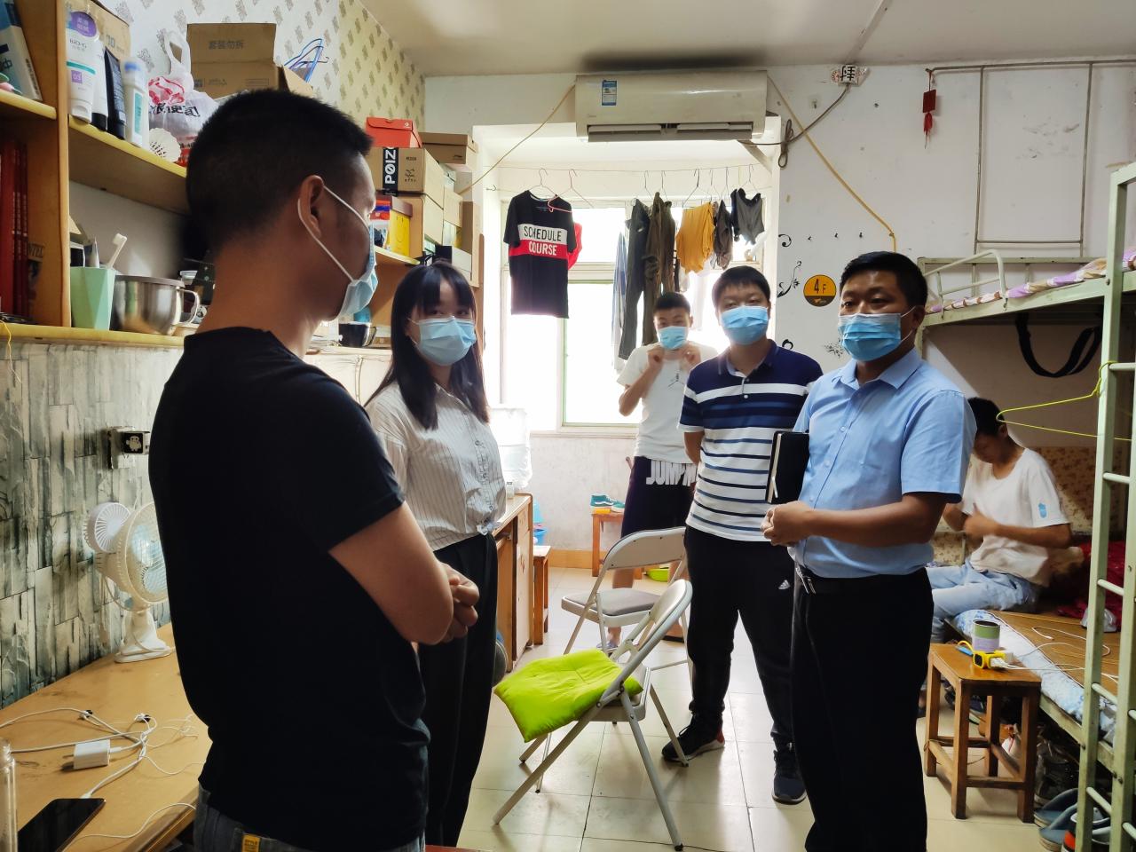 通讯社讯(员工记者 覃杨)为进一步强化疫情防控期间返校员工的健康安全防范意识,营造良好的寝室卫生环境,了解返校后员工的生活学习状况,9月3日14:00,伟德bv1946官网副经理方正武、党委副书记谭亮魁、学工办主任刘庆、分团委书记侯聪、辅导员付雪娇及辅导员林香亮带队走访了伟德bv1946官网本科生寝室。
