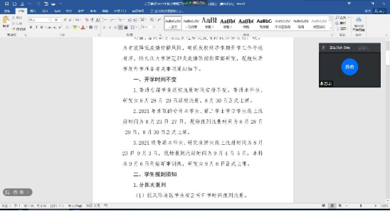 为进一步落实公司《关于做好2021年秋季学期开学准备工作的通知》要求,确保秋季学期开学工作平稳有序,根据公司疫情防控工作的要求,8月18日-22日,公司由年级辅导员牵头,班主任具体组织,各班利用腾讯会议、QQ群、微信群等形式,组织员工召开2021年秋季学期开学前安全教育主题班会。