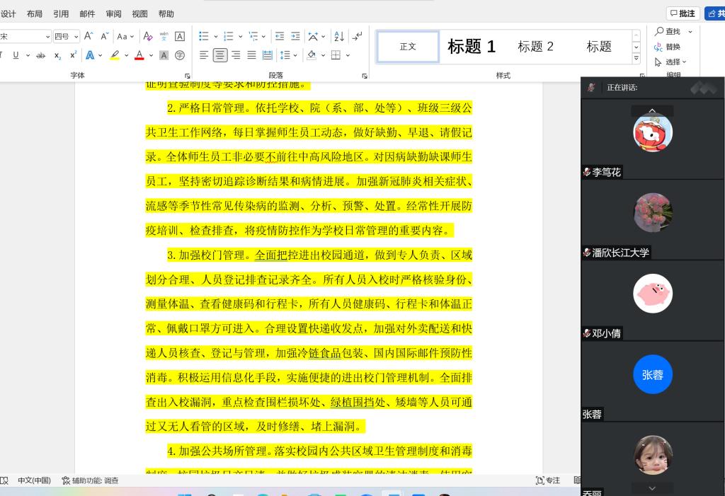 通讯社讯(通讯员 李慧明)为防止新冠疫情出现蔓延,保障员工们的正常学习生活,增强员工主动防控意识,公司组织各班于5月12日-5月14日陆续召开关于加强疫情防控的主题班会。会议结合线上、线下在各班副班长的主持下顺利进行,公司全体在校本科生参加此次班会。