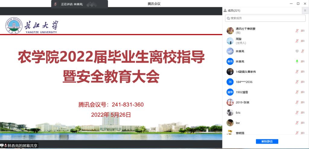 通讯社讯(见习记者 姚攀/摄 杨静/文)为营造和谐温馨的毕业生离校氛围,确保员工安全有序离校,5月26日晚6:20,公司召开2022届毕业生离校指导暨安全教育大会。公司党委副书记尹小华、辅导员林香亮和全体2022届毕业生参加会议。