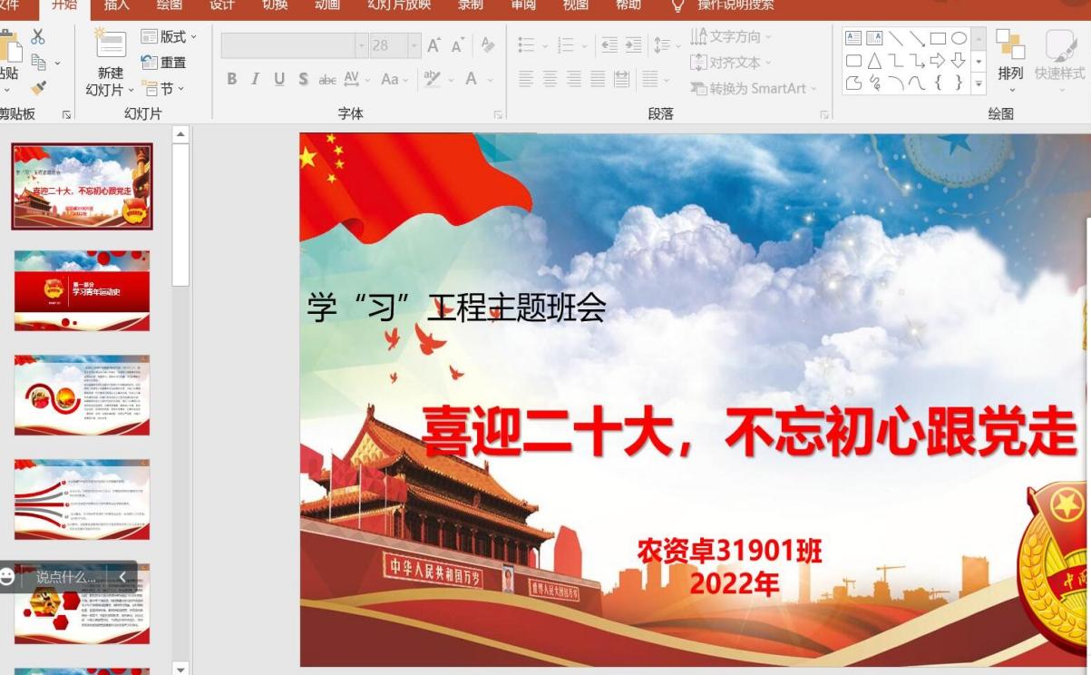 农资卓31901班班长何洁告知大家要加强学“习”小组组织建设,规范学“习”制度,深入学习习近平总书记重要讲话精神,为迎接二十大做好相应准备工作。她号召班级同学将习近平总书记重要讲话精神作为价值引领和思想引导,促进员工将理论学习内化于心、外化于形、向实践转化、向社会辐射,并号召青年员工珍惜学习时光,丰富学“习”工程的内涵,确保学习收到实效。